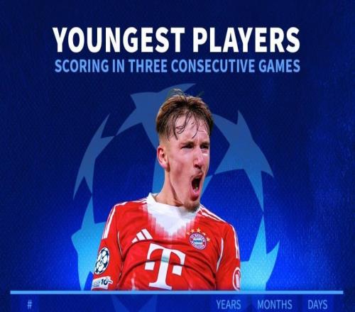 北京时间12月10日,拜仁慕尼黑的17岁小将伦纳特-卡尔达成了连续三场欧冠进球的成就,帮助拜仁在欧冠联赛阶段第6轮的比赛中主场3-1逆转战胜葡萄牙体育。赛后Opta统计出了自1992-